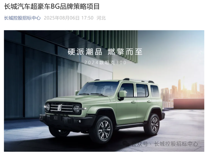 最近,长城控股招标中心又相继发布了《长城汽车超豪车BG品牌策略项目》、《长城汽车超豪车BG品牌用户活动项目》等招标公告,公开招募服务长城汽车超豪车BG的供应商。这意味着传闻已久的长城超豪华轿跑项目正在进入落地倒计时。